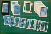 Every card is cut by hand using only an X-acto knife. Each card becomes more and more detailed. When all 56 cards are stacked together it creates a beautiful 3-D pattern.