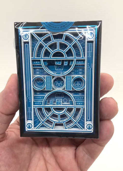 This striking black and blue colored hand-cut 3D piece of art will take your breath away. The deck is mixed with reflective foil that creates the illusion of the Millennium Falcon Room windows.