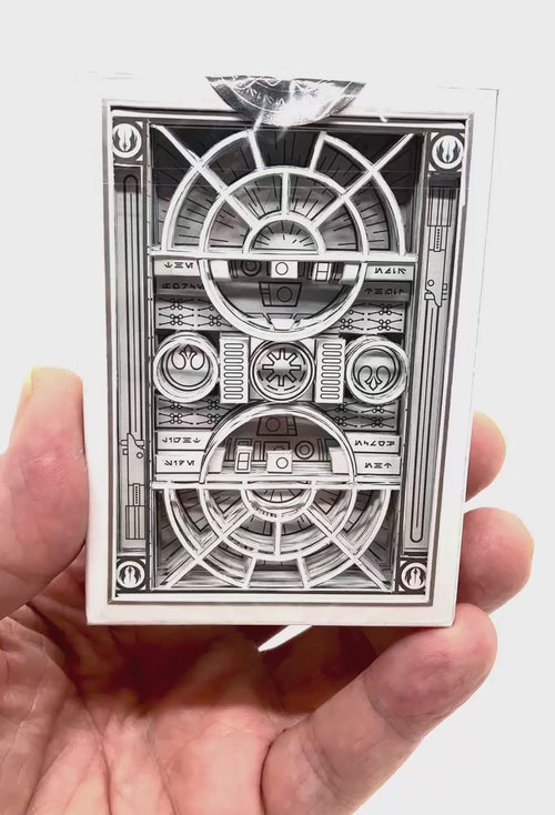 This breathtaking hand-cut 3D deck of cards with silver foil β mixed with clear reflective foil creates the illusion of the Millennium Falcon cockpit window. This deck is visually stunning!