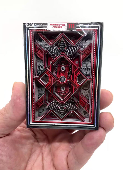Take a trip to the upside down with this holographic red, silver and black hand-cut 3D deck of cards. Nothing strange about this beautiful piece of art.