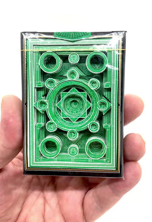 This green foil 3D cut deck of cards is simply jaw-dropping beautiful. The gold foil accents and precise embossing is truly representative of the legendary Infinity Saga.