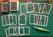 Every card is cut by hand using only an X-acto knife. Each card becomes more and more detailed. When all 56 cards are stacked together it creates a beautiful 3-D pattern.