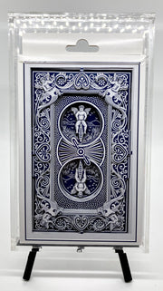 These decks have now been cut and are being sold as Limited Editions because once they're sold they are gone. The big Box decks are 3-D cut, and placed into a custom made acrylic protection case which then sits on an 8" black wooden easel. The miniature decks are 3-D cut, in their original cellophane wrapping, place inside a custom made acrylic box and also rests on a miniature black wooden easel.